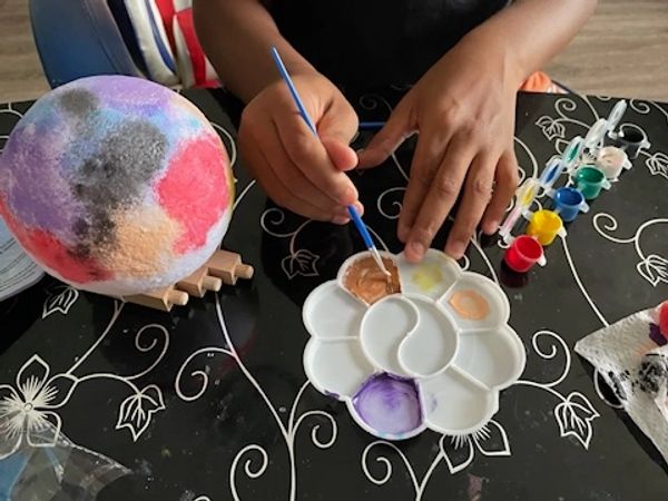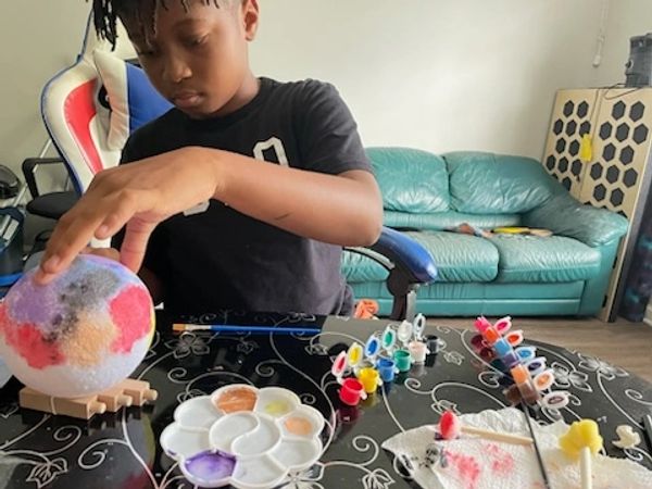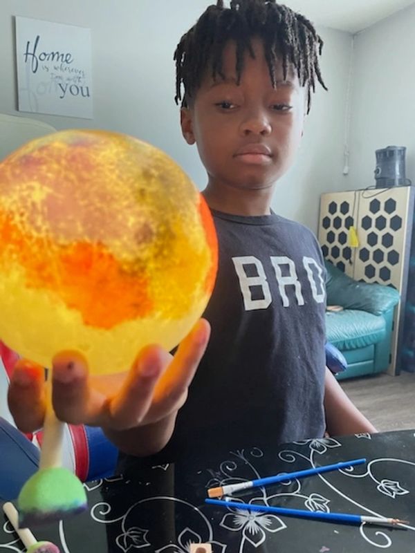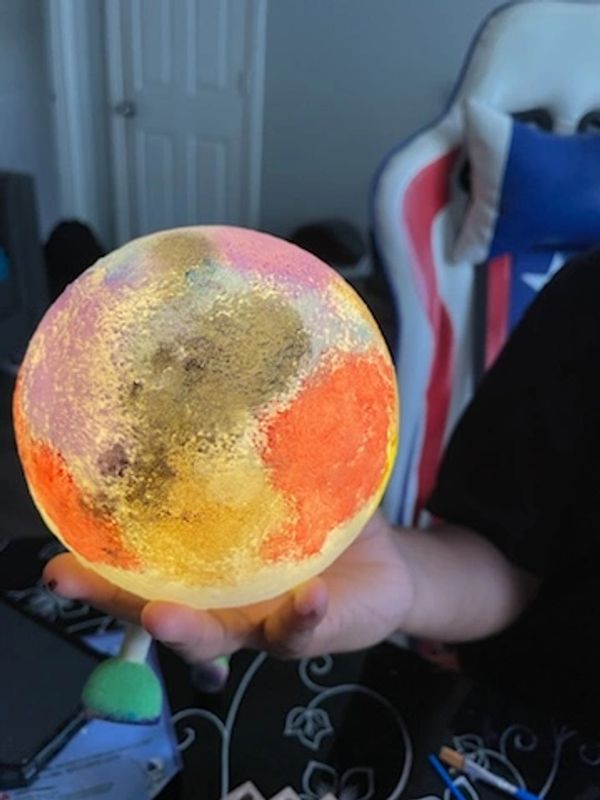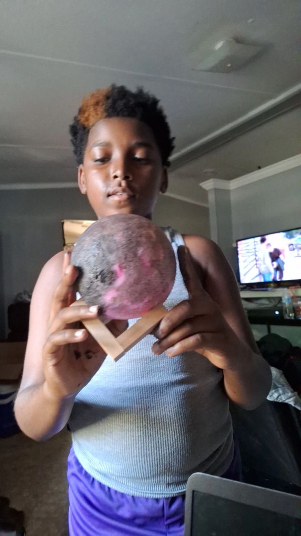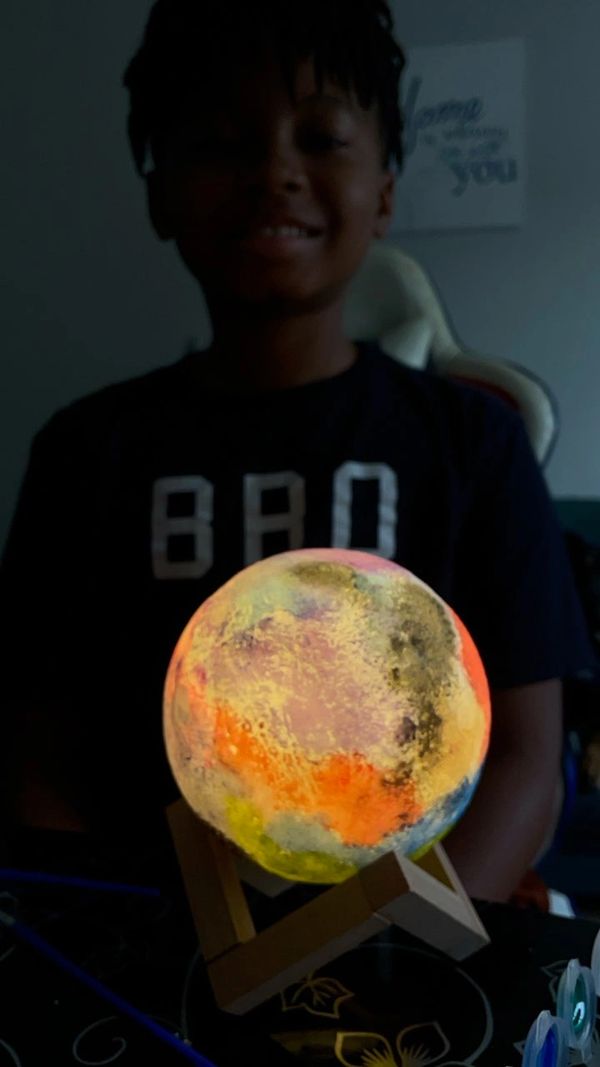 One of our middle school youth completed his S.T.E.A.M. art kit, Moon Lamp. Nothing but awesomeness.