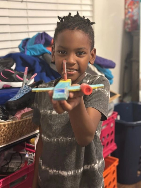 This young man has completed his S.T.E.A.M. (Technology) kit…Bow and Arrow Rotation.