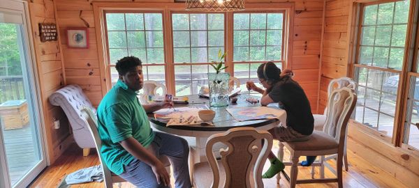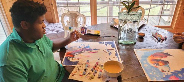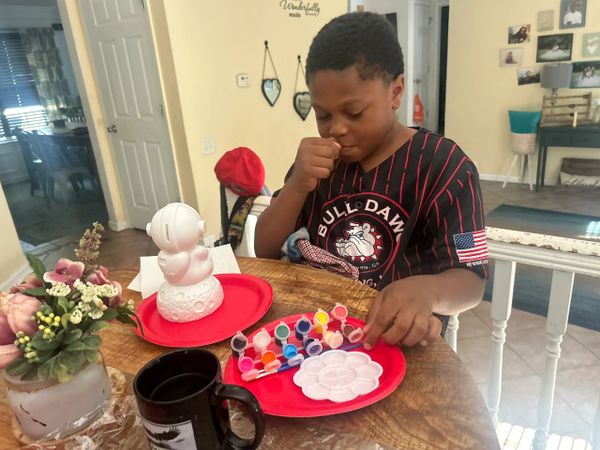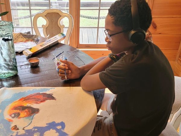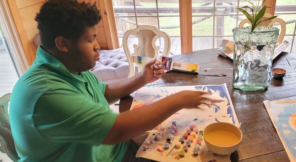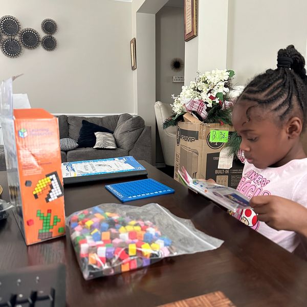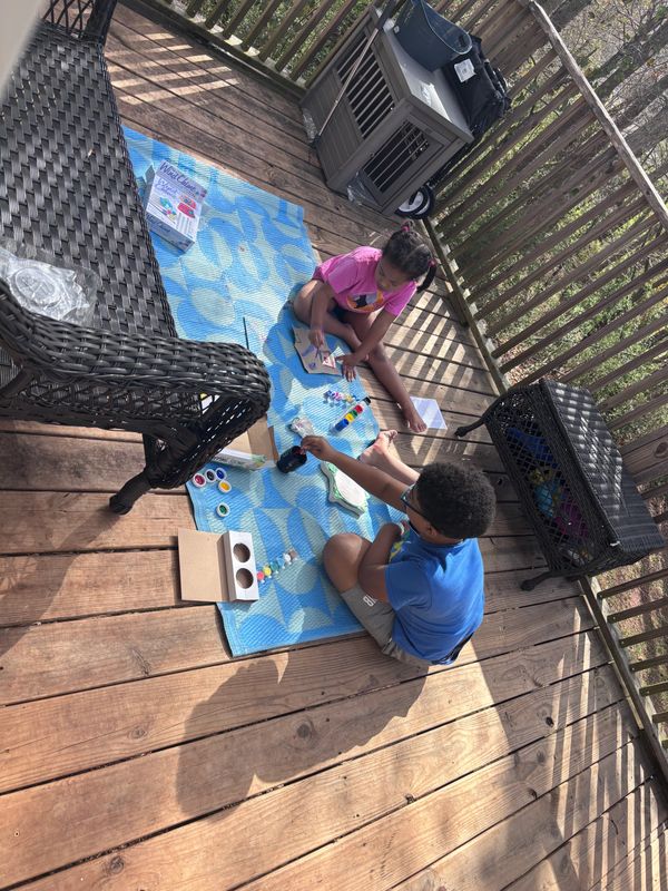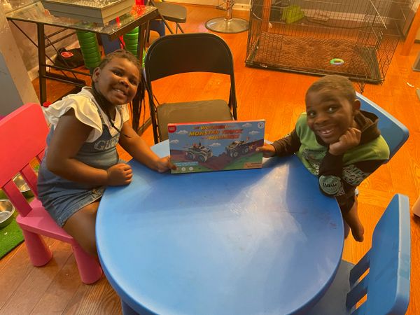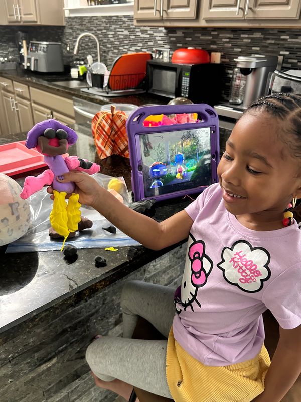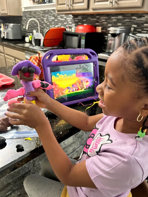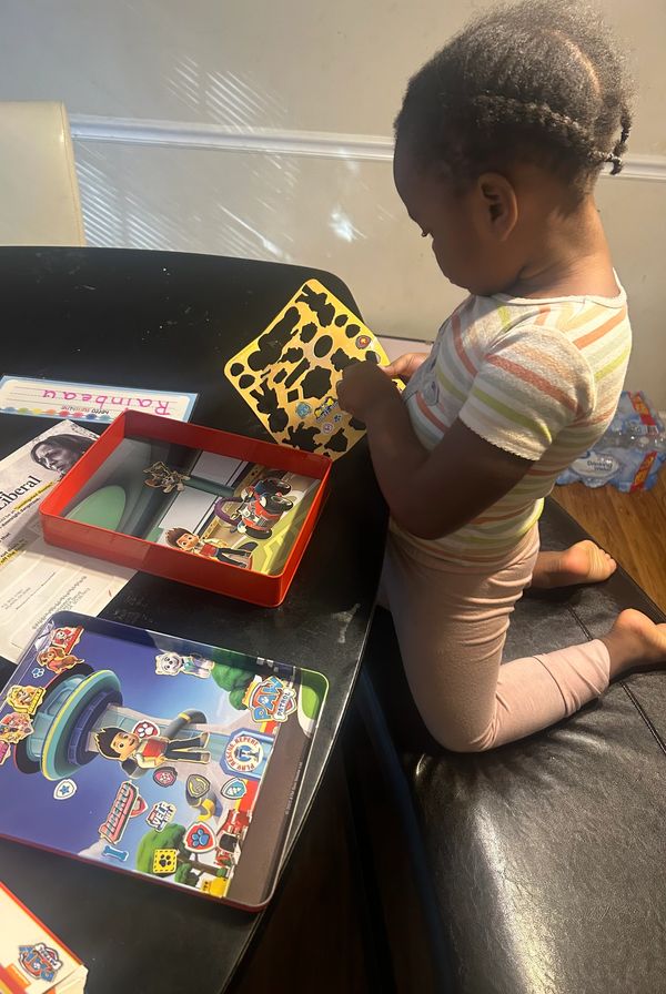 Pouring into one of our 4 year olds, providing reading and art along with fun with our S.T.E.A.M. Art (art and language arts) kit. Encouraging creativity and learning.